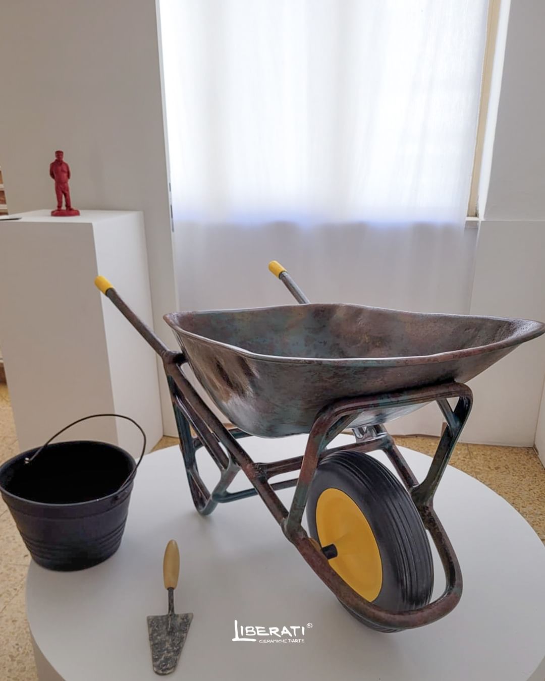 La Carriola in Ceramica Iperrealistica realizzata nel laboratorio Liberati è una replica fedele di una carriola da giardinaggio. Con dimensioni a grandezza naturale, ogni dettaglio – dalle ruote al manico, dalla vasca alla texture superficiale – è scolpito e rifinito con una precisione maniacale. La particolarità di questa carriola sta nell’effetto ruggine, che conferisce al pezzo un aspetto autentico e vissuto, richiamando l’immagine di un oggetto usato nel tempo, pur essendo realizzato in ceramica. Questo effetto non solo esalta l’aspetto estetico, ma aggiunge anche una dimensione narrativa all’opera, come se la carriola avesse una storia da raccontare.