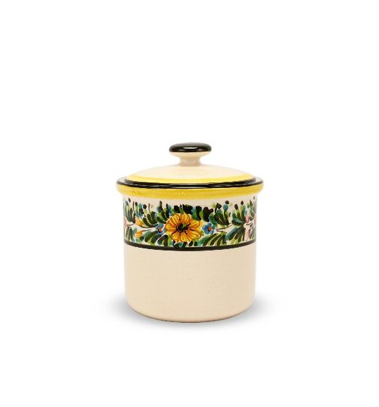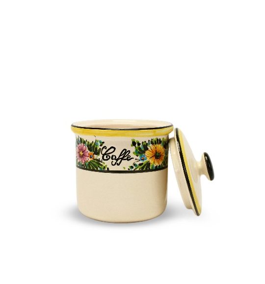 Il Barattolo in ceramica per caffè con decoro Margherite è un contenitore in maiolica in stile tradizionale di altissima qualità, utile, comodo e raffinato, adatto ad ogni cucina. Può essere lavato in lavastoviglie a max 60º. Al momento dell’acquisto, al prodotto verrà allegato il Certificato di garanzia che attesta l’artigianalità della lavorazione.