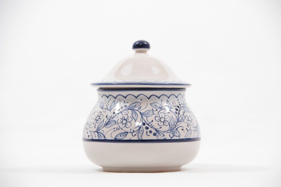 Barattolo porta aglio in ceramica con coperchio, decoro Teate blu