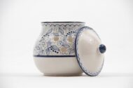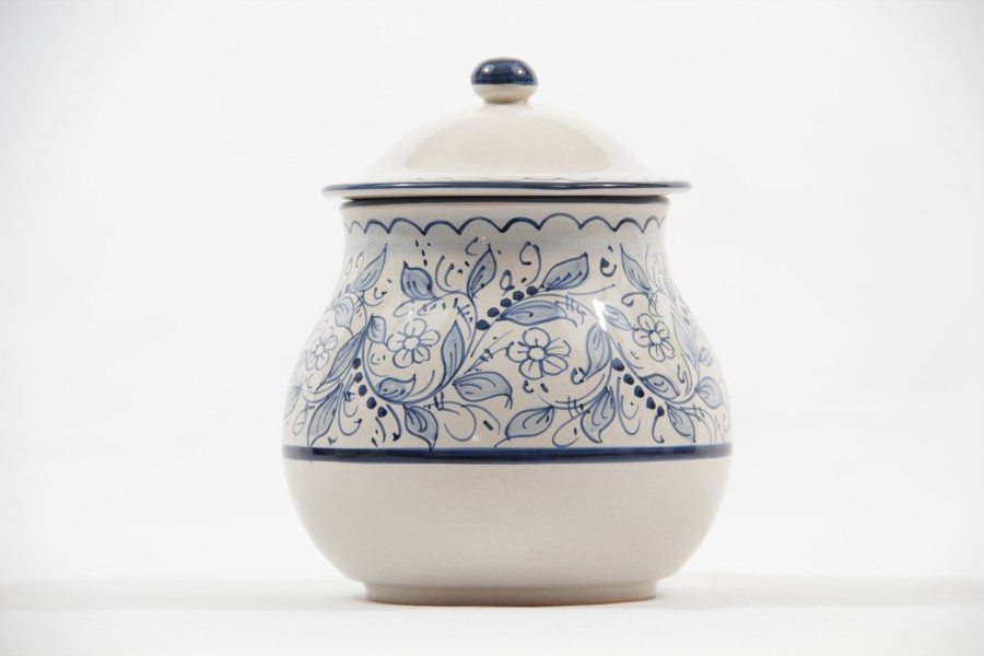 Barattolo portacipolla in ceramica artigianale, decoro Teate blu