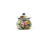 Il barattolo portapeperoncino con coperchio in ceramica italiana è realizzato e decorato a mano con il decoro tipico dell’Abruzzo il Fioraccio, con metodi artigianali e con materiali adatti per uso alimentare.