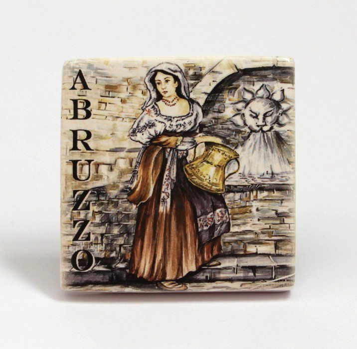 Magnete in ceramica a rilievo, realizzato e dipinto a mano, rappresenta il trabocco abruzzese. I trabocchi sono delle casette dei pescatori di leggera costruzione che poggiano sui fondali marini e/o sugli scogli tipici del paesaggio marino d’Abruzzo.