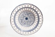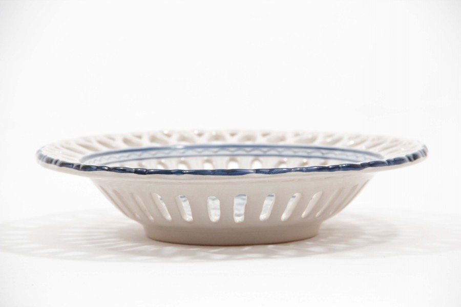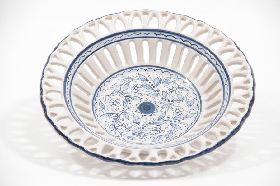 Centrotavola in ceramica italiana con traforo rapino, decoro Teate blu