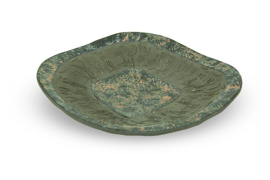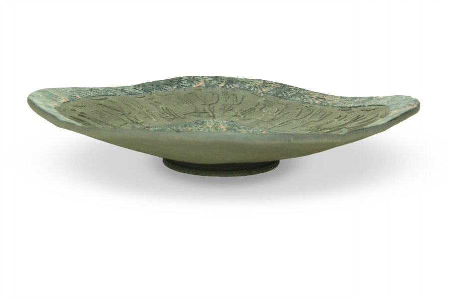 Il Centrotavola moderno in ceramica refrattaria è stato modellato interamente a mano in argilla nera e decorato con incisioni rupestri in stile moderno e smalti, un vero e proprio omaggio all’arte primitiva. Il manufatto è un pezzo unico, non riproducibile, ricalca lo stile contemporaneo della migliore ceramica moderna italiana. L’opera rappresenta un pezzo unico della ceramica contemporanea italiana, al momento dell’acquisto verrà allegato il Certificato di garanzia a riprova dell’autenticità e dell’artigianalità della lavorazione.