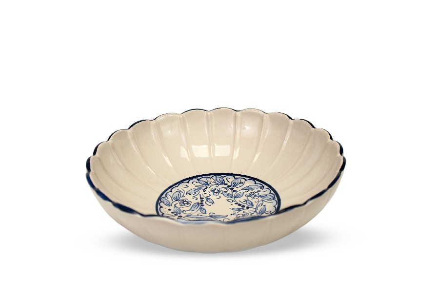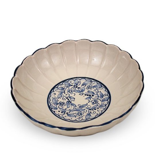 Ciotola fruttiera in ceramica artigianale a coste, decoro Teate