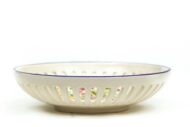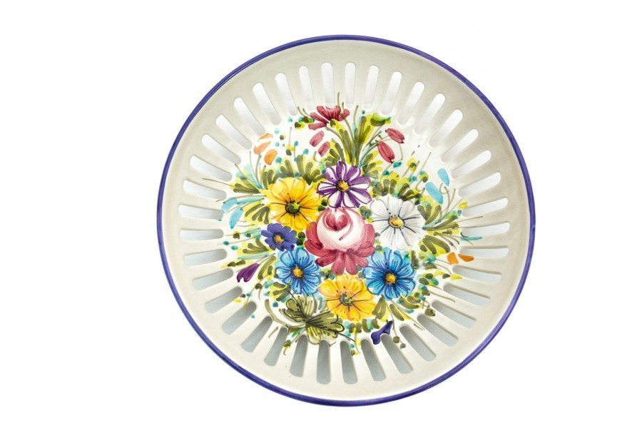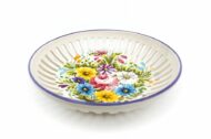 Ciotola o svuotatasche in ceramica italiana, utilizzabile anche come centrotavola o portacioccolatini.  Modellato, traforato e dipinto a mano con decoro floreale tipico della regione Abruzzo “fioraccio” di Ceramiche Liberati. Disponibile in due formati di diametro, da 18 e da 23 cm.