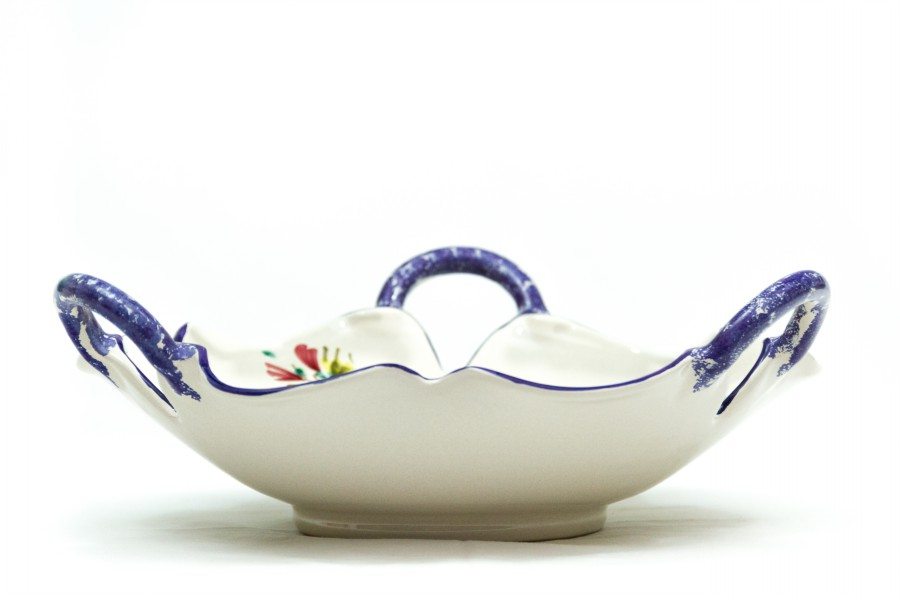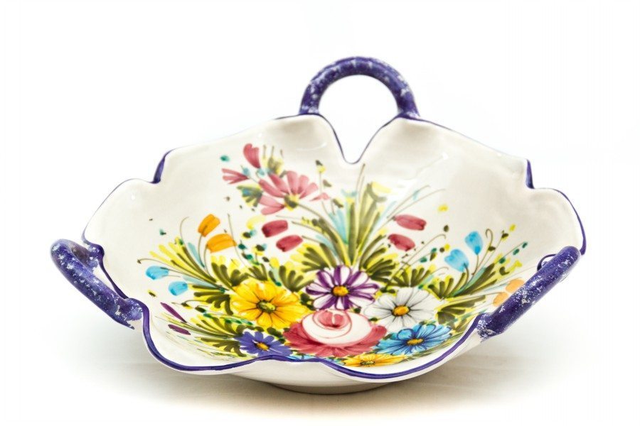 Fruttiera in ceramica con manici decoro Fioraccio