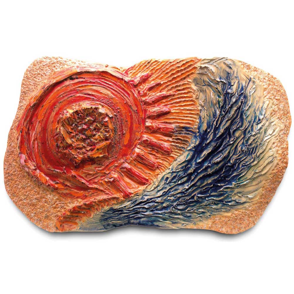 Pannello modellato a mano, in argilla refrattario e smalti. Pezzo unico, dimensioni cm 70×42. Collezione Privata.