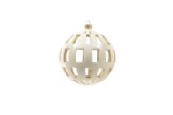 Pallina di Natale moderna traforo regolare con rettangoli simmetrici, colore bianco opaco