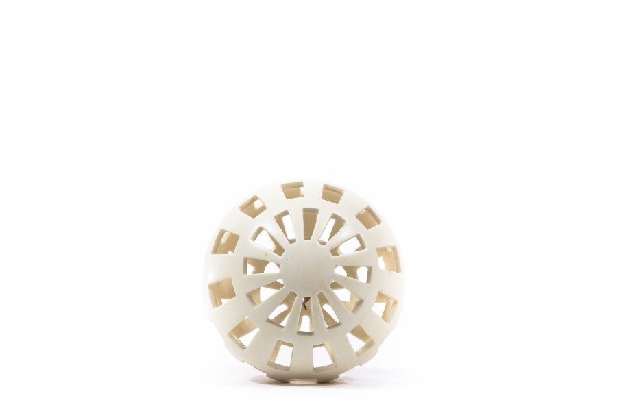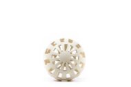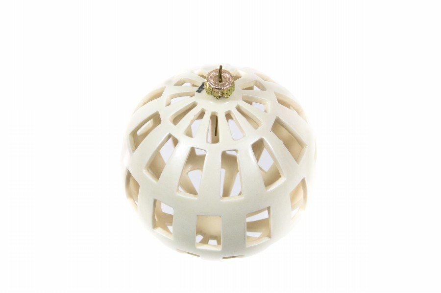 Per la traforatura della pallina, oltre alle svariate ore di lavoro, sono necessari maestria e abilità. Lo spessore dell’argilla e la delicatezza della forma a sfera rendono difficile il processo di lavorazione anche quando l’argilla è alla giusta durezza cuoio. Una volta terminata la fase della traforatura artistica a mano libera, la palla viene cotta a biscotto e successivamente  rivestita con la cristallina vetrosa trasparente. In tal modo la cristallina matt sulla terracotta bianca non altera il colore e dona lucentezza all’oggetto. L’ultima fase della lavorazione consiste nella seconda cottura che rinforza la forma. La Palla di Natale è di colore bianco opaco, molto elegante e sofisticato.