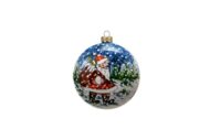La pallina di Natale è realizzata in ceramica italiana con metodi artigianali, interamente lavorata e decorata a mano. Raffigura il Babbo Natale vestito di rosso e con un sacco di regali sulle spalle sullo sfondo paesaggistico invernale.