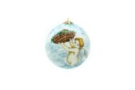 Pallina a sfera per Natale “Puttino con cesto natalizio”, dipinto a mano