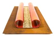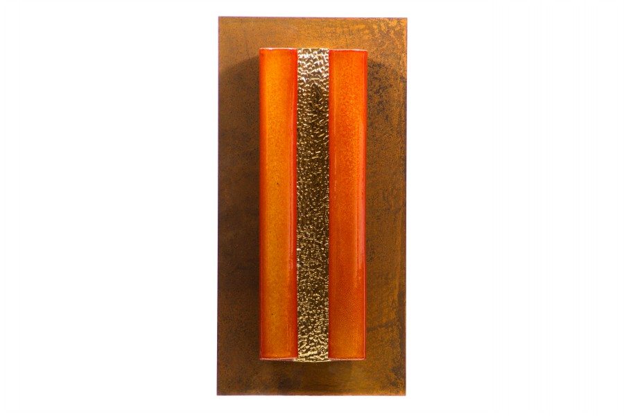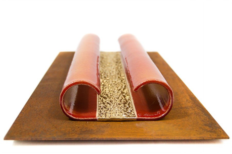 Pannello in ceramica maiolica, oro zecchino e acciaio corten