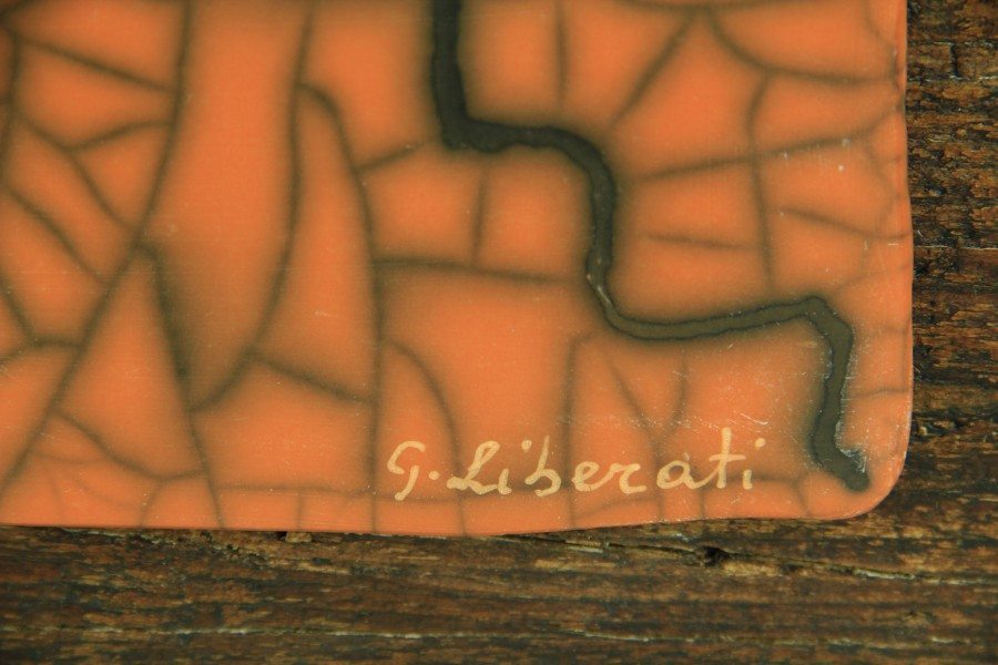 Il Pannello in ceramica raku nudo è montato su finitura in legno ed è destinato all’arredo casa d’interni, si adatta perfettamente a vari stili arredativi. Gli elementi che compongono la parte in ceramica sono stati modellati a mano e lavorati con la tecnica raku nudo, che permettono di ottenere effetti craquelé contrapposti del nero sull’arancione. Tutte le fasi della realizzazione del pannello, dalla foggiatura alla decorazione finale, sono state eseguite nel rispetto della migliore tradizione di lavorazione della ceramica italiana artistica.