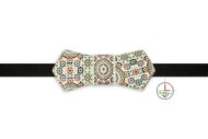 Il decoro del papillon “Maiolic” rappresenta una fantasia decorativa pensata come omaggio alla maiolica italiana. Letteralmente con la parola “maiolica” viene definito un tipo di vasellame caratterizzato da un corpo ceramico poroso rivestito, prevalentemente per immersione, di uno smalto stannifero. Il nome deriva da quello dell’isola di Maiorca, uno dei centri più attivi in tale smercio nel medioevo. I colori classici e gli accostamenti di elementi decorativi danno origine ad un continuo rimando tra tradizione del decoro e attualità dell’accessorio moda, il quale a sua volta garantisce un look elegante e ricercato. Il decoro del papillon è stato realizzato a colori e applicato con la tecnica di stampa digitale su ceramica.