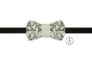 Il decoro “Ipotenusa” rappresenta una composizione di triangoli disegnati simmetricamente su entrambi i lati del papillon in bianco e nero. Alcuni dei triangoli sono stati arricchiti da altri elementi decorativi, come puntini o linee parallele, che riempiono la superficie dei triangoli mettendo in evidenza la parte centrale del papillon, lasciata in bianco e senza decoro. Il nome del decoro “Ipotenusa” deriva dal nome dato al lato opposto all’angolo retto in un triangolo rettangolo; altri due lati vengono chiamati cateti. Dal latino hypotenusa significa “linea tesa sotto” e il decoro del papillon si presenta, non solo come una rappresentazione di più triangoli creati con le linee, ma voglia essere un omaggio alla scienza della geometria e della matematica più in generale. L’applicazione del decoro è stata eseguita con la tecnica di stampa digitale su ceramica che rende l’immagine indelebile. Il decoro “Ipotenusa” è disponibile anche sul modello del Papillon in ceramica Romantico.