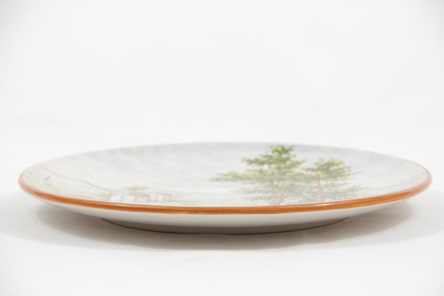 Tutte le fasi di lavorazione del piatto da muro in ceramica, dalla foggiatura alla decorazione sono state eseguite a mano in modo artigianale. Il decoro “a paesaggio” è uno dei tipi di decoro riproducibili artigianalmente e viene eseguita a mano, pertanto, pur mantenendo integralmente le caratteristiche, il decoro sul piatto acquistato potrebbe presentare piccole differenze nel disegno rispetto alla foto allegata a scopo illustrativo. Il piatto è facile da appendere grazie al gancio già predisposto sul retro. Al momento dell’acquisto verrà allegato il Certificato di garanzia che attesta l’artigianalità del manufatto.