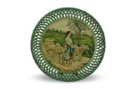 Piatto da muro La Pastorella con gregge di Michetti in ceramica, dipinto a mano con fascia intrecciata