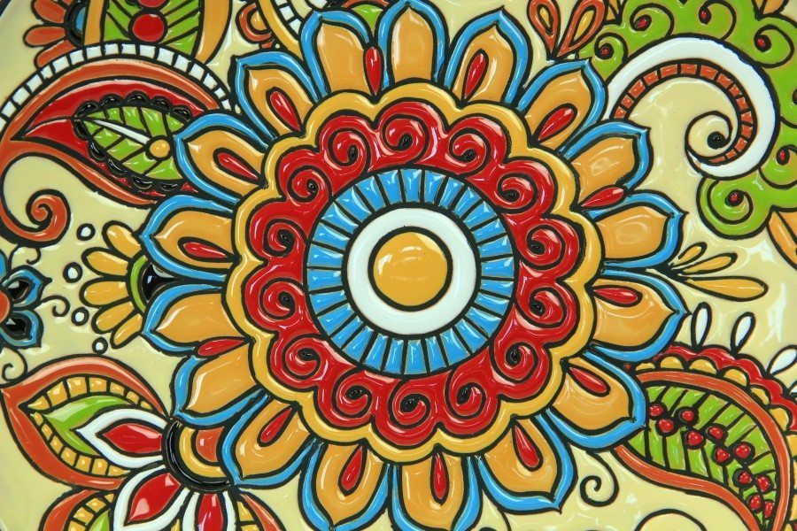 Il Piatto da muro in ceramica italiana è stato realizzato e decorato a mano con la tecnica di decoro cuerda seca, caratterizzata da smalti a rilievo. Tutte le fasi della realizzazione del piatto, dalla foggiatura alla decorazione finale, sono state eseguite nel rispetto della migliore tradizione di lavorazione della ceramica artigianale. Il posizionamento di un elaborato fiore al centro del piatto con elementi a motivo floreale che lo circondano rappresentano la nascita, l’inizio della nuova stagione in fioritura.