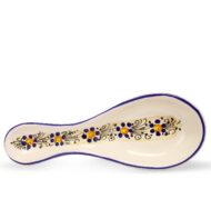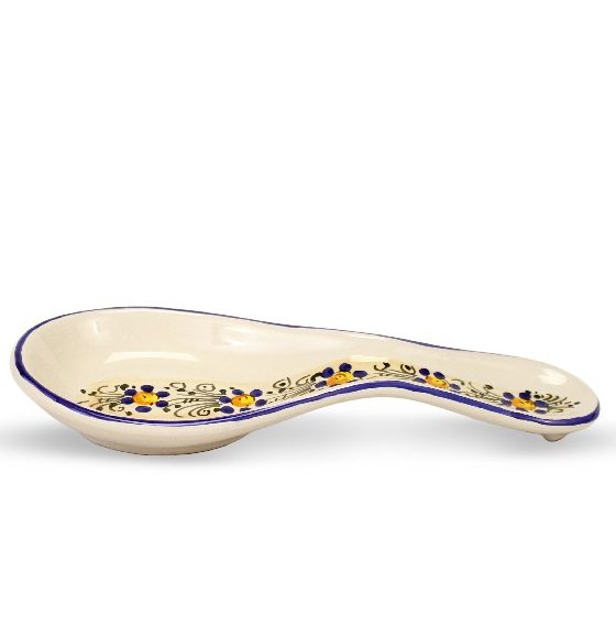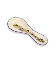 Il poggiamestolo in ceramica italiana è realizzato e decorato a mano con decoro floreale, con metodi artigianali e con materiali adatti per l’uso alimentare. L’oggetto è stato foggiato, rifinito e decorato a mano con smalto di colore avorio e decoro tipo Rustico di Ceramiche Liberati.
