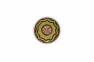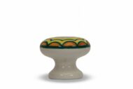 Il decoro del pomello è realizzato interamente a mano con la tecnica a pennello con i colori ceramici sulle tonalità del giallo, arancio e verde. Il nome Sipario è stato scelto per tale pomello poiché le linee ondeggianti che racchiudono il decoro, ricordano le tende arricciate che vengono chiuse e aperte all’inizio e alla fine dello spettacolo o delle sue eventuali suddivisioni. L’oggetto fa parte della categoria di prodotti riproducibili e quindi il decoro proprio perché realizzato a mano, pur mantenendo le caratteristiche descritte, potrebbe leggermente differenziarsi da quello sull’oggetto nella foto illustrativa. Per le diverse dimensioni del pomello il decoro, mantenendo le caratteristiche illustrate, viene ridimensionato in base alle proporzioni del top del pomello in ceramica.
