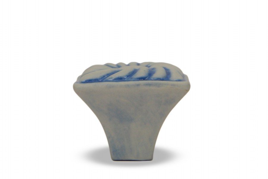Pomello in porcellana artigianale modello Iris quadrato effetto bluette opaco