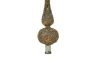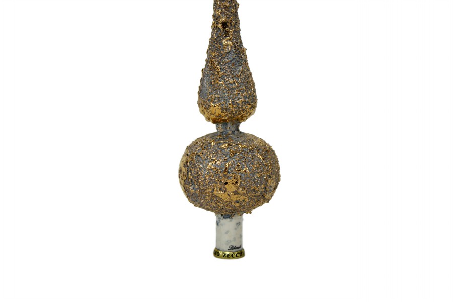 Il puntale in ceramica artigianale con rifinitura in oro zecchino è stato realizzato a mano secondo le antiche tecniche di lavorazione della ceramica italiana. La particolare decorazione del puntale in ceramica avviene con un processo a terzo fuoco, ovvero la ceramica decorata o smaltata subisce tre cotture. Il puntale è stato interamente modellato a mano e smaltato con un colore sulle tonalità del grigio. Successivamente la seconda cottura, dopo essere stato impreziosito con l’oro zecchino, è passato in forno per la terza ed ultima cottura. Un puntale originale e raffinato che renderebbe il vostro Natale ancora più elegante!