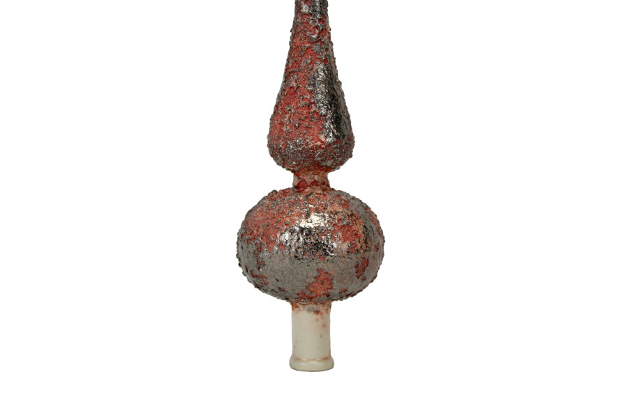 Il puntale in ceramica artigianale con rifinitura in platino è stato realizzato a mano secondo le antiche tecniche di lavorazione della ceramica italiana. La particolare decorazione del puntale in ceramica avviene con un processo a terzo fuoco, ovvero la ceramica decorata o smaltata subisce tre cotture. Il puntale è stato interamente modellato a mano e smaltato con un colore sulle tonalità del rosa. Successivamente la seconda cottura, dopo essere stato impreziosito con il platino, è passato in forno per la terza ed ultima cottura. Un puntale originale e raffinato che renderebbe il vostro Natale ancora più elegante!
