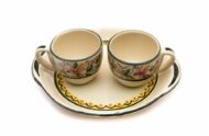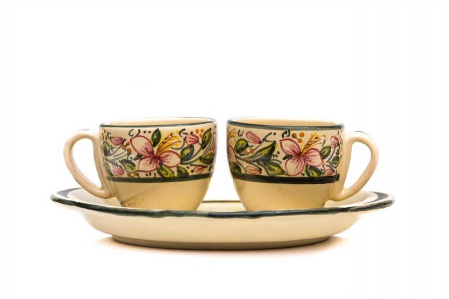 Il Servizio caffè in ceramica tête-à-tête per due persone con vassoio tondo è un manufatto artigianale raffinato, può essere lavato anche in lavastoviglie ad una temperatura max 60°. Al momento dell’acquisto, al prodotto verrà allegato il Certificato di garanzia che attesta l’artigianalità della lavorazione.