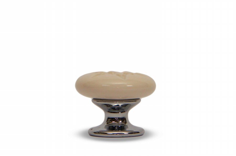 Pomello in ceramica Stella bianca base cromo